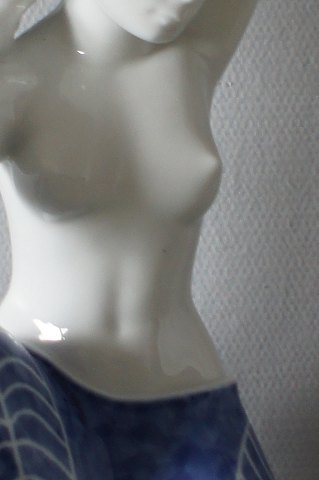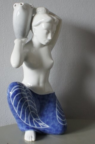 Her tilbydes en Royal Copenhagen stor porcelænsfigur.Halvnøgen kvinde bærende en vandkande. Af Johannes Hedegaard. Perfekt, 2. sortering. # 4359. Størrelse: 32 ½ cm høj.
