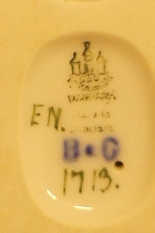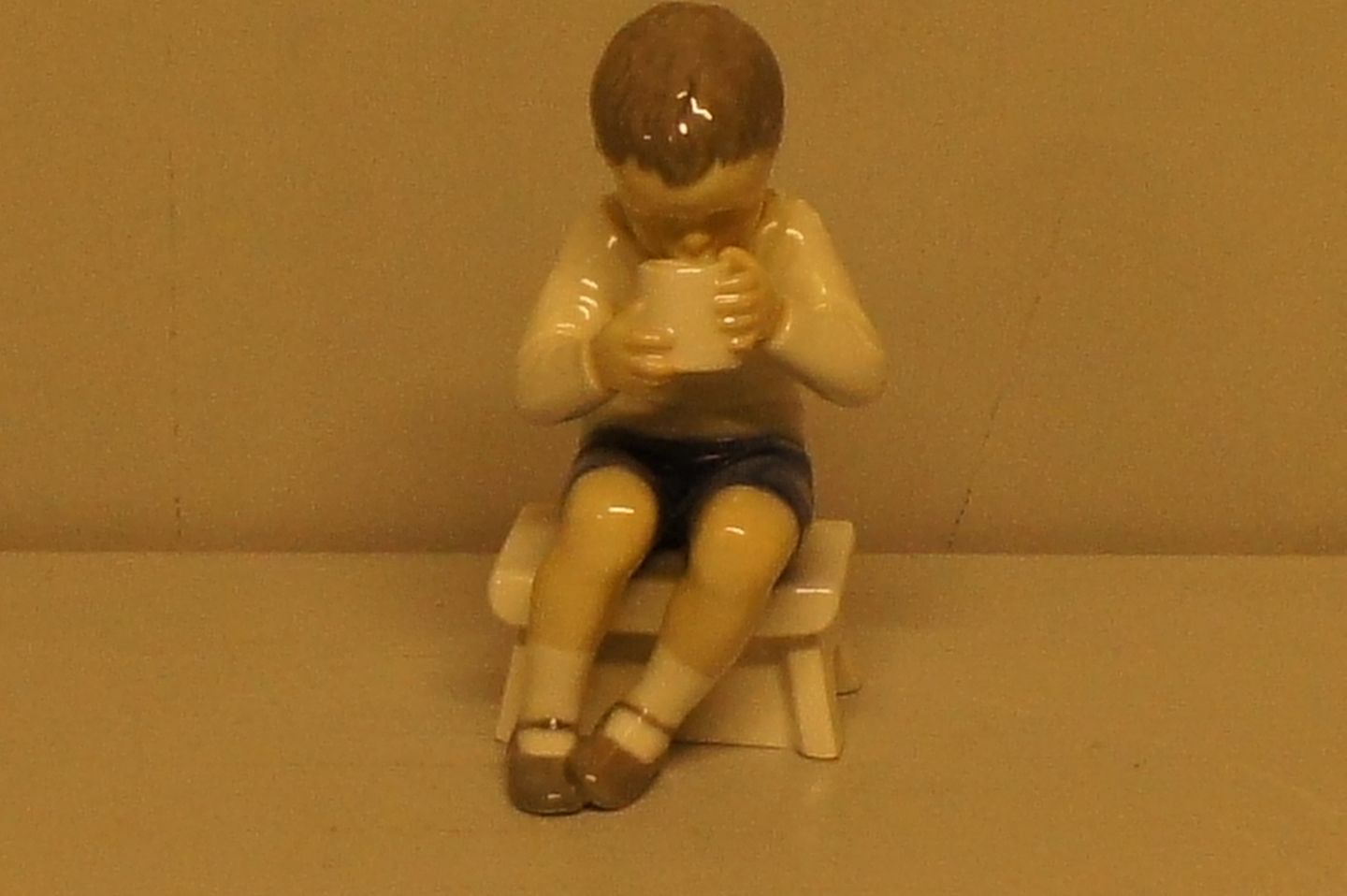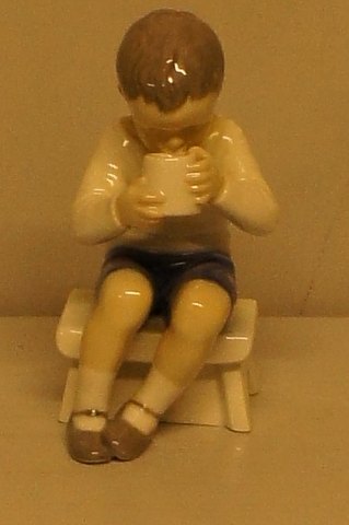 B&G #1713, boy with cup. Factory first. In perfect condition. 14 cm. high. Hallmarked.