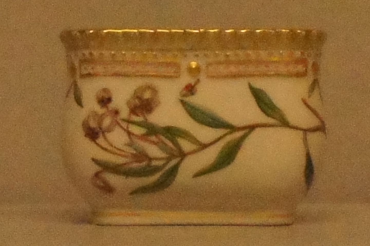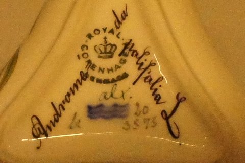 Royal Copenhagen Flora Danica trekantet krukke. # 20/3575. Latinsk betegnelse : Andromeda polifolia L 4 cm. høj og 7 cm. i diameter. Top og underdel mangler. 1.sortering, i perfekt stand.