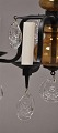 Erik Höglund, lysekrone, smedejern behængt med glas plaketter & 4 arme til el. H. 35. Ø 32 cm. Svensk design, ca. 1970. I god stand.
