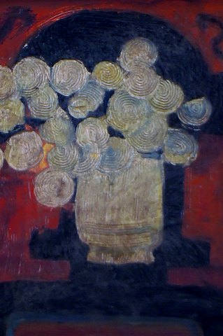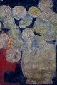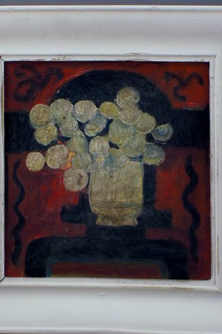 Interessant maleri, 1920´erne. Usigneret. Hvide blomster i vase. I god stand, trænger til rens. Størrelse : 23 cm. x 24½ cm. Rammen er 5½ cm. bred.