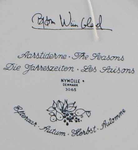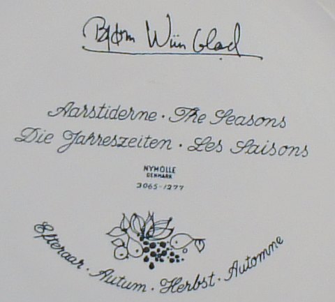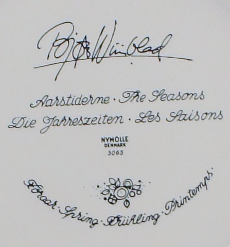 Bjorn Wiinblad The seasons, all four plates. Earthenware Manufacturer: Nymølle Design: Bjorn Wiinblad Diameter 36 cm. Perfect condition.