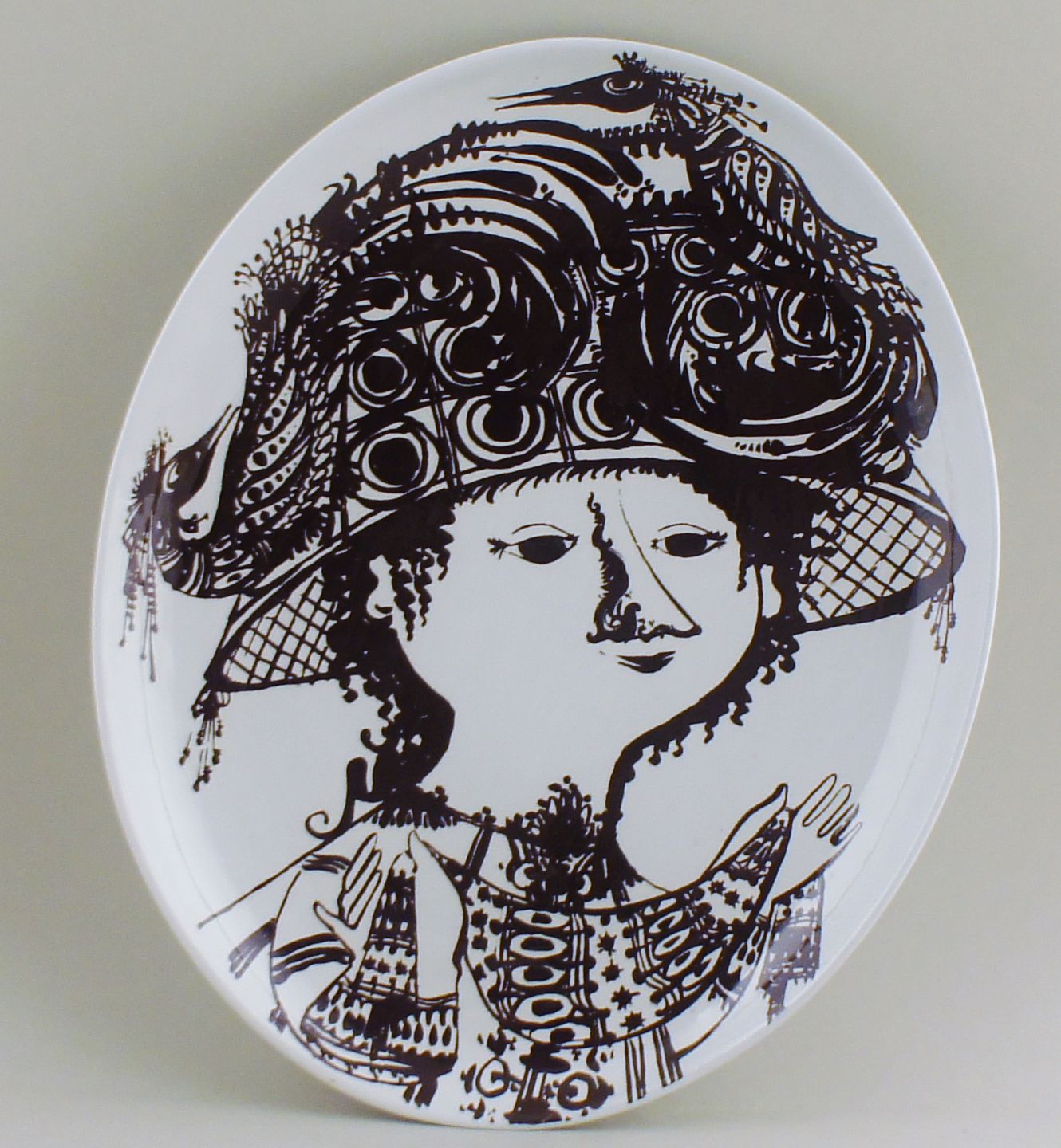 Bjørn Wiinblad, stort fad, "Gwendolen Fairfax, 1954. Fajance.