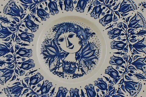 Bjørn Wiinblad, stort fad, kvinde med blomster, fajance. Producent: Nymølle Design: Bjørn Wiinblad Diameter 30½ cm. Perfekt stand.