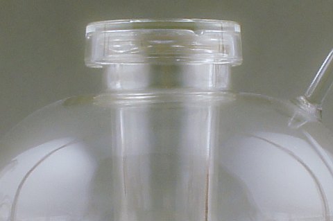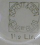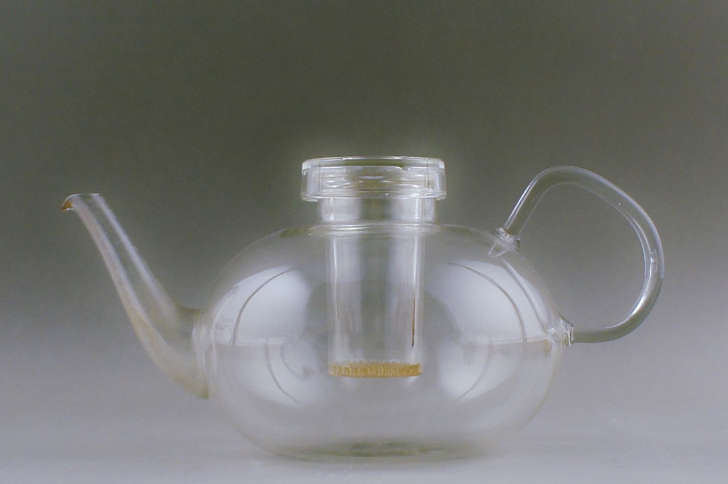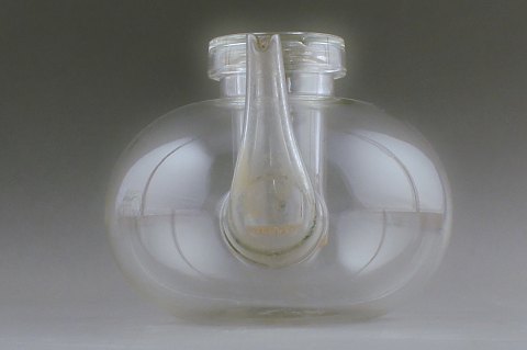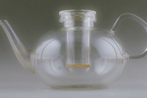 Wilhelm Wagenfeld: "Jena". Thekande af klart glas. Mrk. Jenaer Glas. Stor model 1½ liter. I god stand. 27 cm. i diameter og 15 cm. høj.