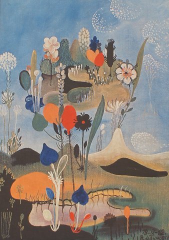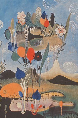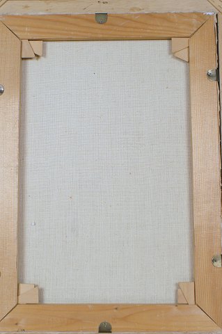 Surrealistisk landskab, olie på lærred. Balkan-skole 1962, utydeligt signeret. 37x52 cm. I god stand. Rammen er 5 cm. bred og i god stand.