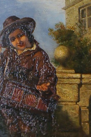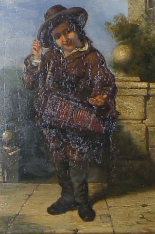 William Mulready (1786-1863) English painter. Oil on wood. Young entertainer. In good condition, some crazing. Beautiful antique frame, 8 cm. wide, in good condition. The painting measures 32x24 cm.