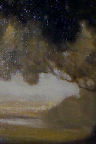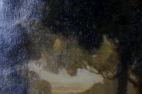 Olie på lærred, landskab med personer, antageligt fransk kunstner. Utydeligt signeret 91 (1891)