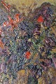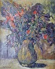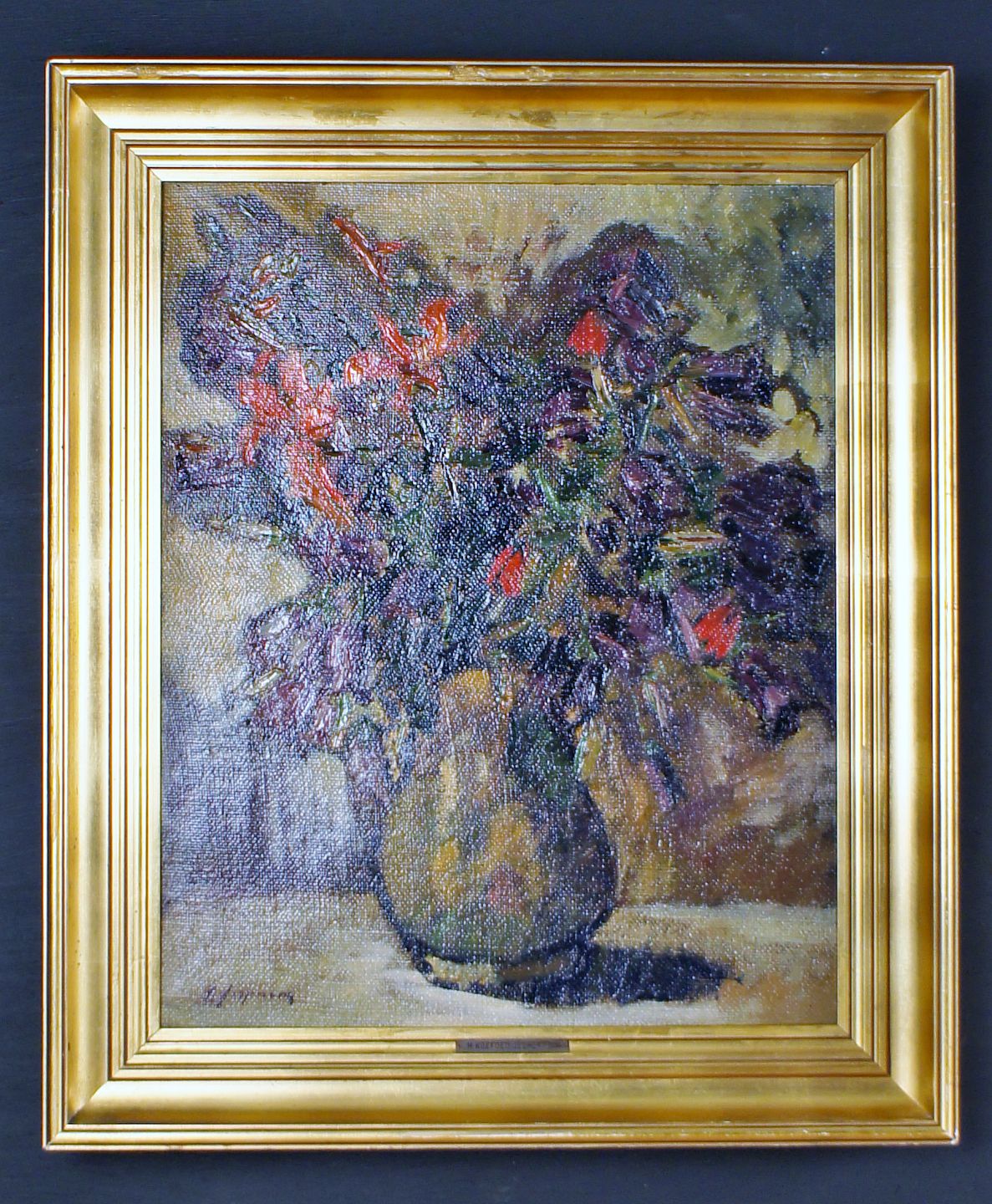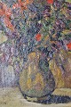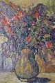 Hans Koefoed-Jespersen: born Torarp Mellangård, Sweden 1884, died 1975: Flowers in a vase. Signed. Oil on canvas. 59 x 47 cm. The golden frame is 9.5 cm. wide. In good condition.