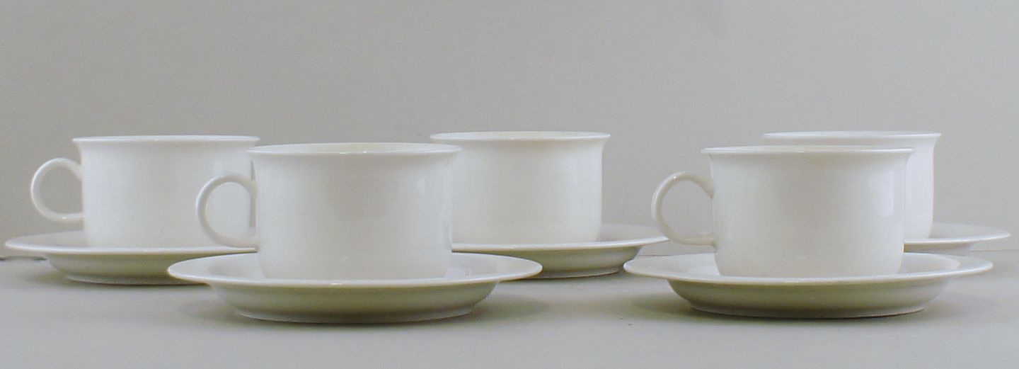 Arabia Arctica, 5+5 kaffekopper og underkopper, porcelæn. Stemplet. I perfekt stand. Kaffekop : 6.5 cm. høj.