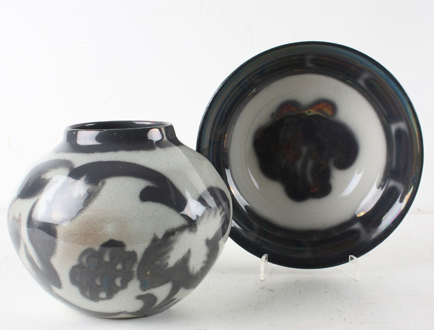 EDGAR Bockman, bowl and vase. Glazed stoneware, signed "EB" Height 14 cm. In perfect condition. Bowl dkk 600, vase dkk 1,000.