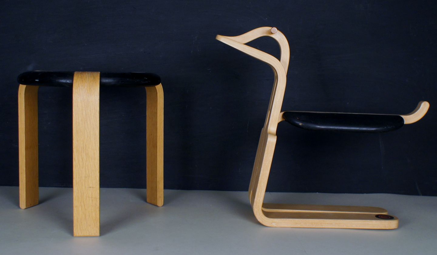 Magnus Olesen 1977 Jubilæum gyngehest og skammel i elmetræ.