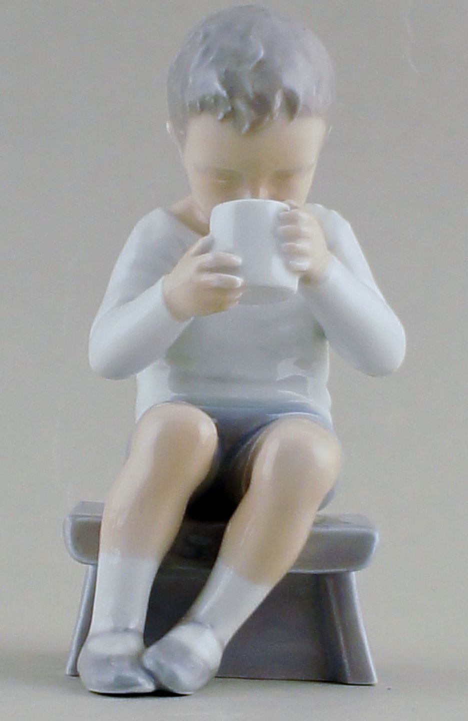 B&G (Bing & Grøndahl) dreng med kop nummer 1713. Tidligt stempel. 13 cm. høj. 1. sortering, i god stand.