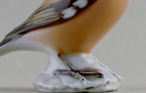 B&G (Bing & Grøndahl) bogfinke, nummer 2322. Tidligt stempel. 9 cm. høj. 11 cm. lang. 1. sortering, i god stand.