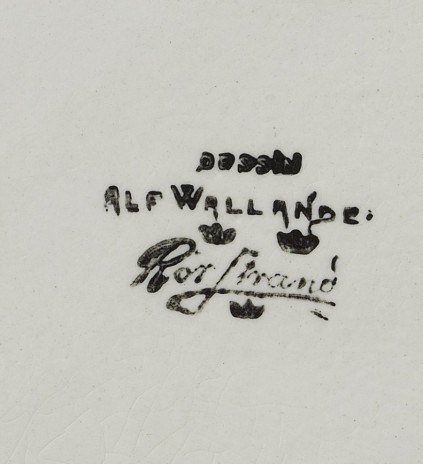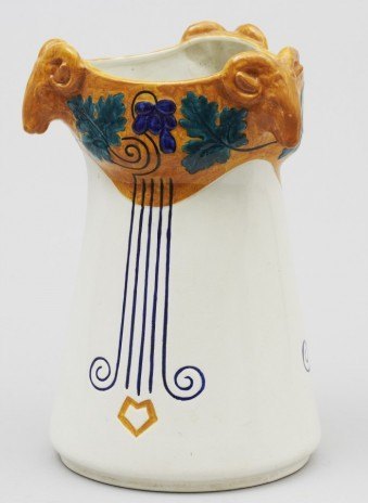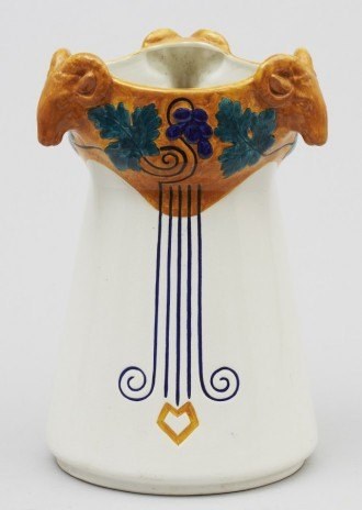 Faience vase, Art Nouveau. Design by Alf Wallander for Rørstrand. Signed. Decorated with rams' heads. Height 28 cm. In good condition.