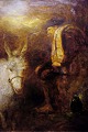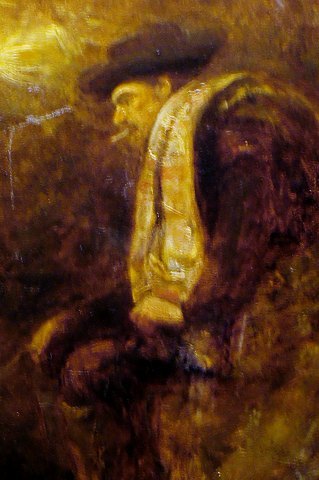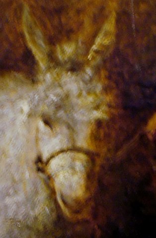 Olie på lærred, 1800-tallet, mand med æsel holder hvil. Antageligt engelsk eller spansk skole. I god stand. Måler 20 x 25 cm.