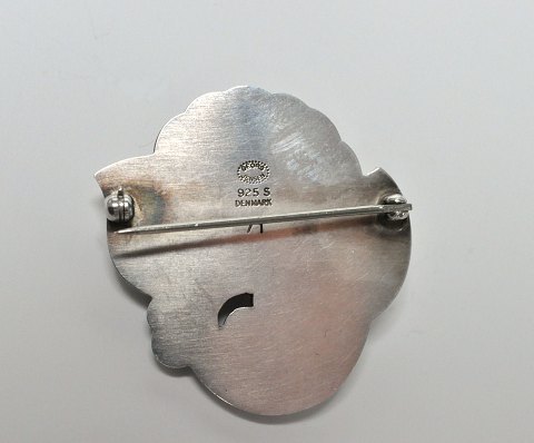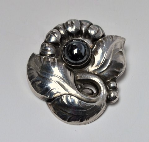 Georg Jensen. A brooch of sterling silver, embellished with stylized foliate and cabochon hematite. Dessin 71. Made after 1945. H. 3.5 cm. In perfect condition.