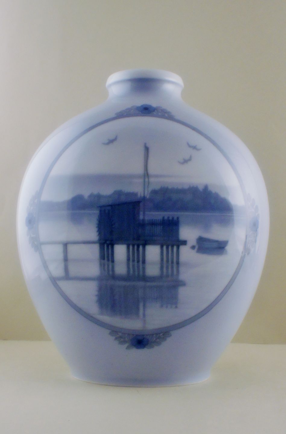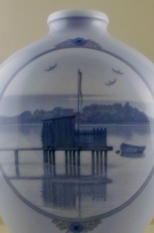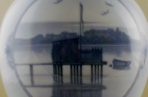 Monumental Royal Copenhagen unique vase by Stephan Ussing. Sortedams Dosseringen, Copenhagen lakes. Dated 1925. Stamped. Factory first. In perfect condition. Measures : 32 x 41 cm.