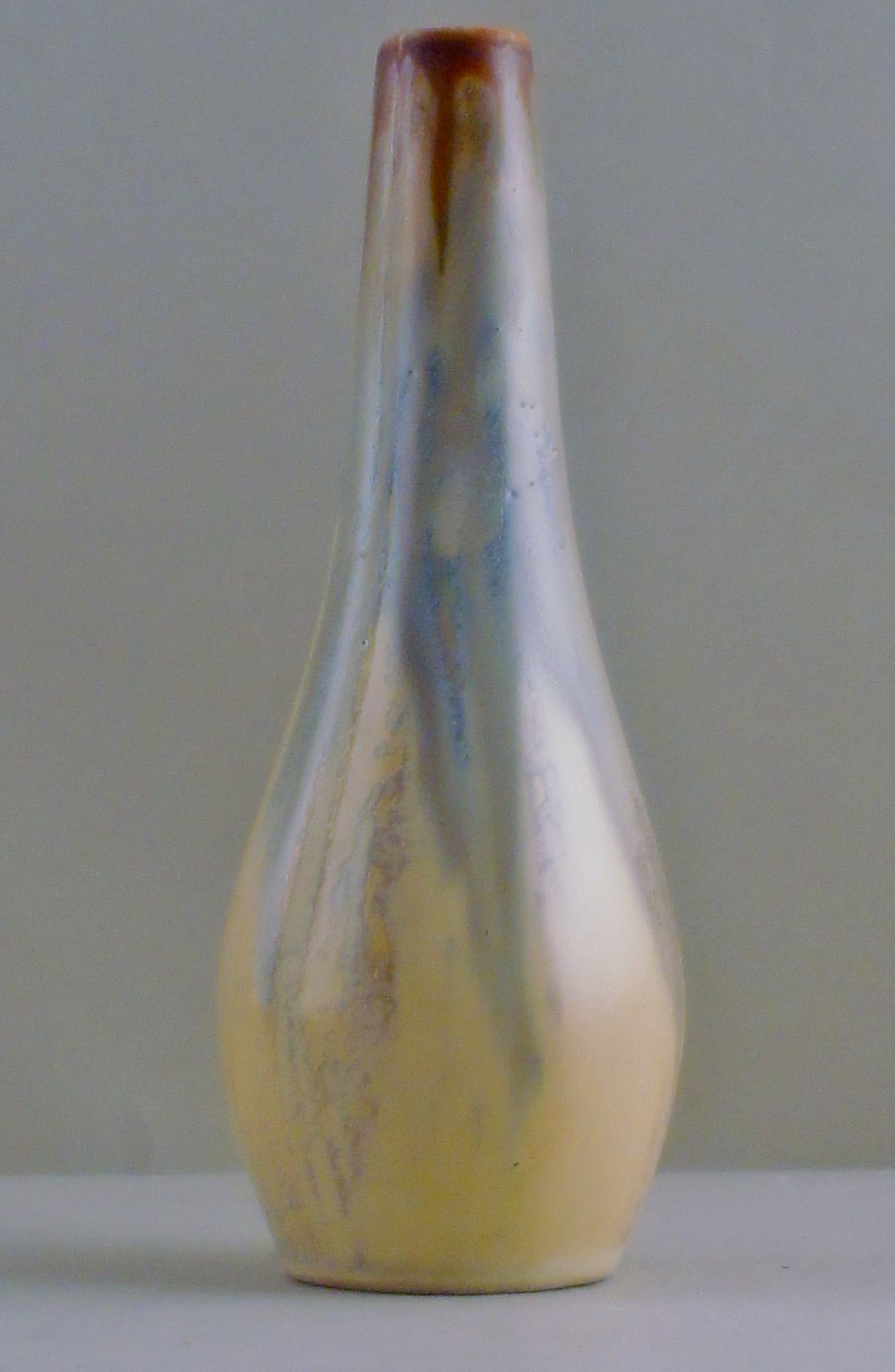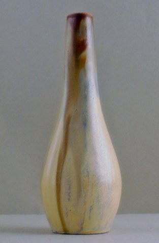 Gilbert Metenier, fransk keramiker. Art Deco vase i flammende gul, blå og brun. 1920-30´. Signeret. Højde 24 cm. I perfekt stand. Gilbert Méténier blev født i 1876 og overtog sin fars keramik i Gannat i det centrale Frankrig omkring 1920.