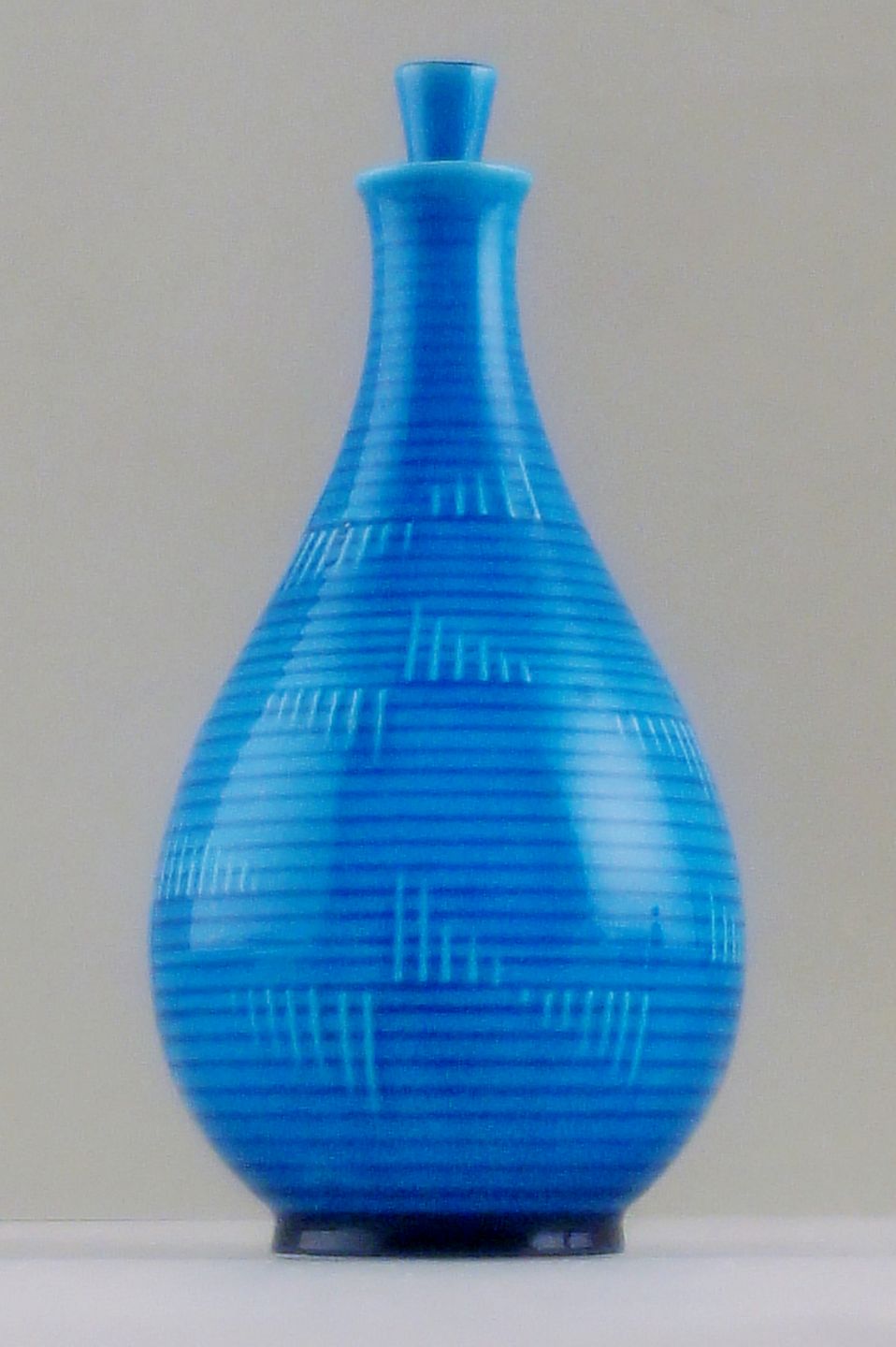 B&G (Bing & Grondahl) Art deco turquoise bottle in porcelain.