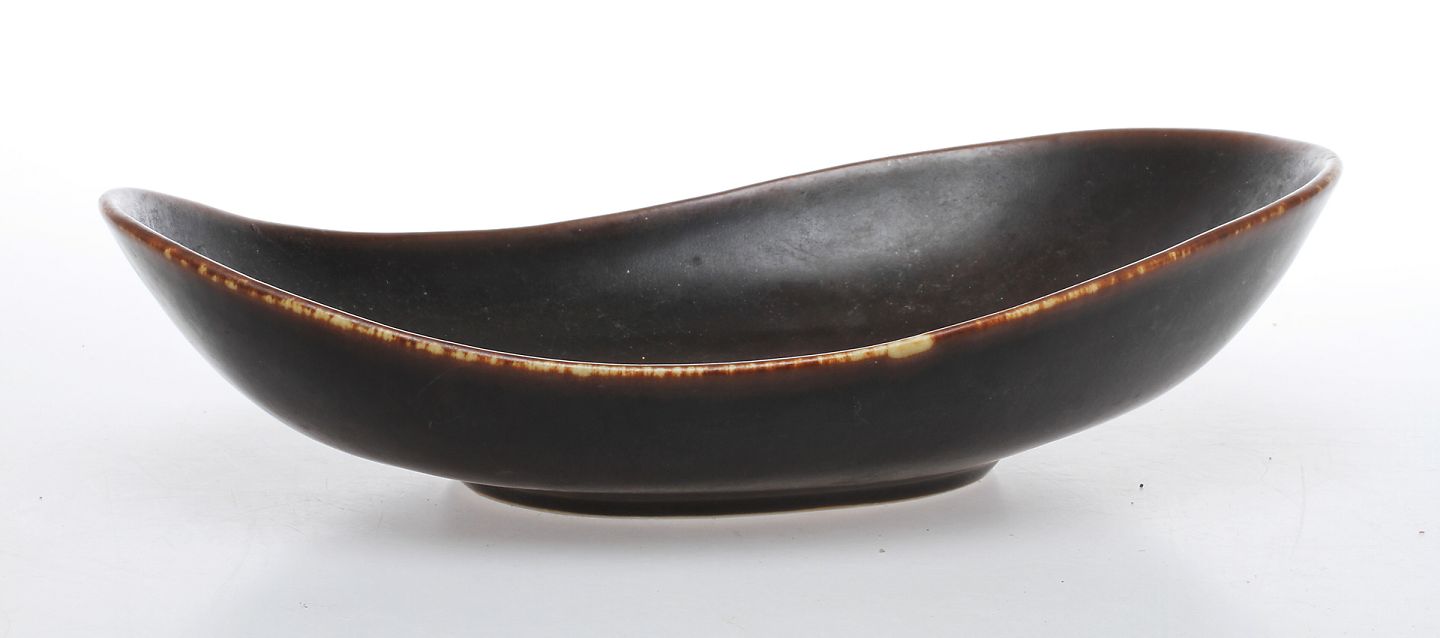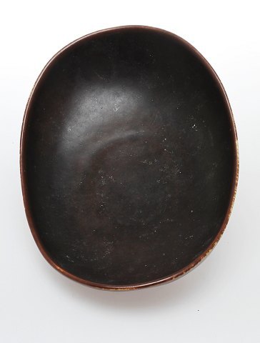Carl-Harry Stålhane, Rørstrand, stor skål i stentøj. Brun glasur. Længde 27,5 cm. I god stand, 1. sortering.