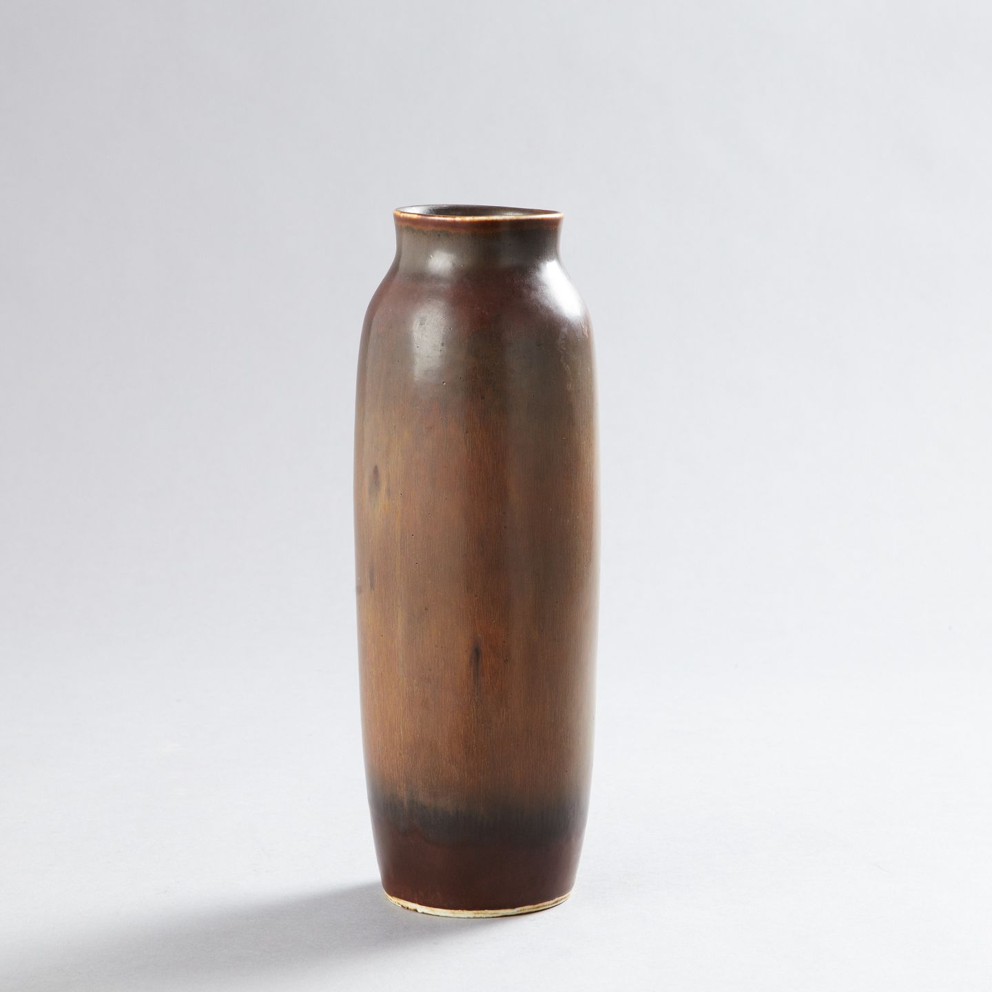Carl Harry Stålhane, Rorstrand stoneware vase. Glaze in shades of brown. In good condition, factory first. 31 cm. height