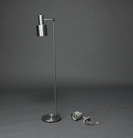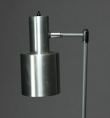 Jo Hammerborg. Floor lamp, brushed aluminum, base in gray lacquered metal. Produced by Fog and Mørup. Height 150 cm. In good condition.