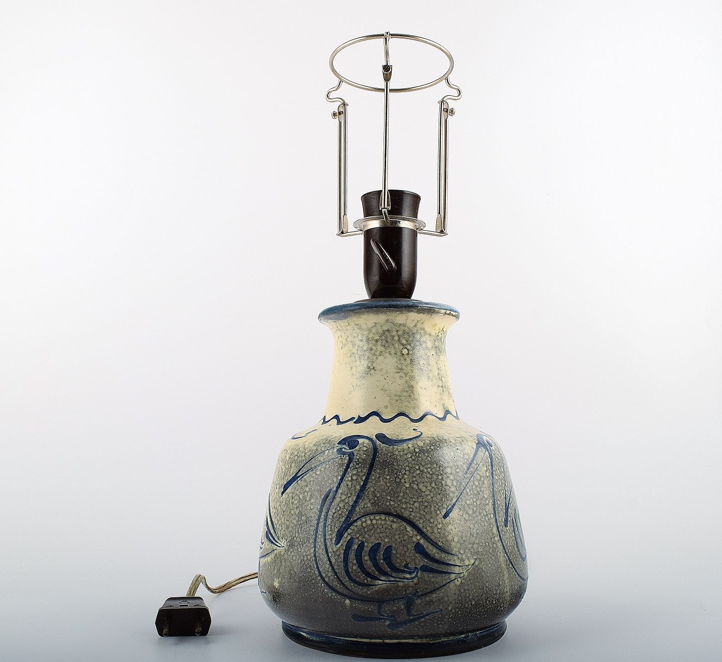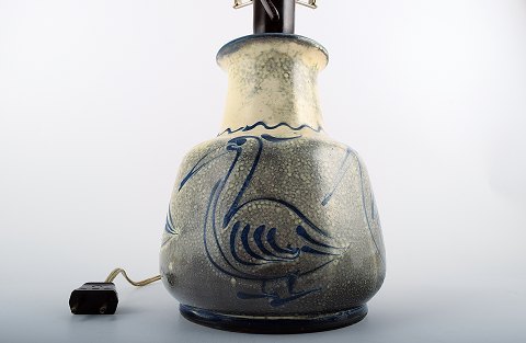 Jens Thirslund (1892 - 1942) Unika Kähler bordlampe dekoreret med fugle. Stemplet HAK. 1920/30´erne. I perfekt stand. Måler 22 cm. (40 cm. inkl. fatning)