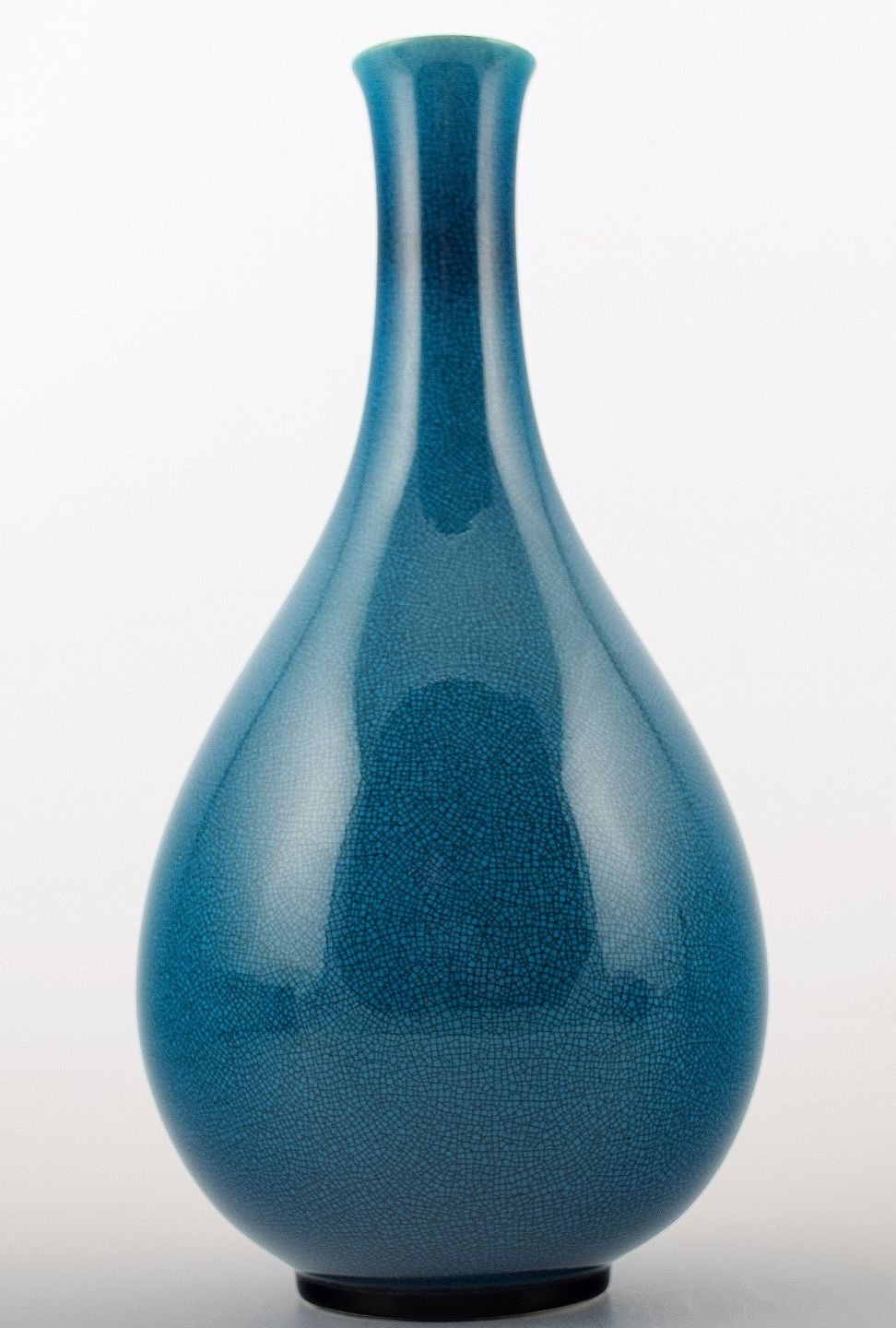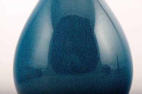 B&G (Bing & Grondahl) crackled / Craquele art deco porcelain vase in beautiful turquoise glaze. Circa 1930s. Very beautiful vase in Chinese style. In perfect condition, factory first. Measures 25.5 cm.