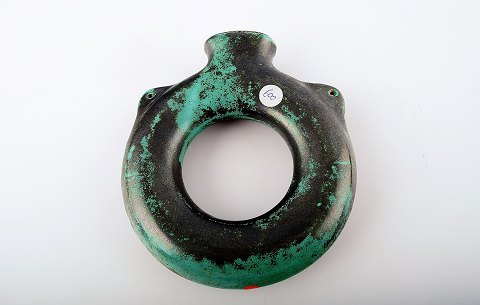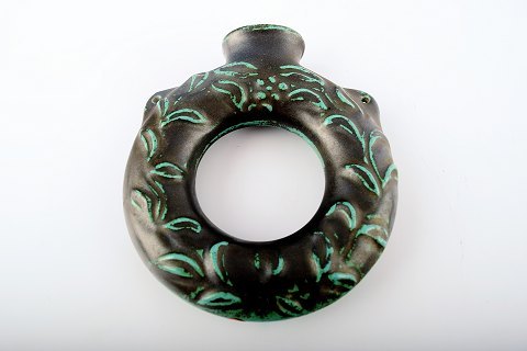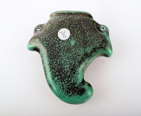 Two Danish, glazed stoneware wall vases. Not stamped. Size: 10 and 15 cm. long In perfect condition. Price for the small vase DKK 300, the large vase costs DKK 600.