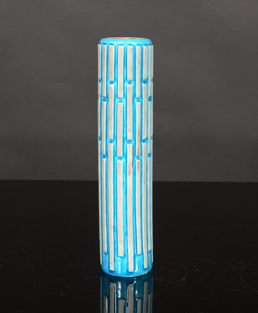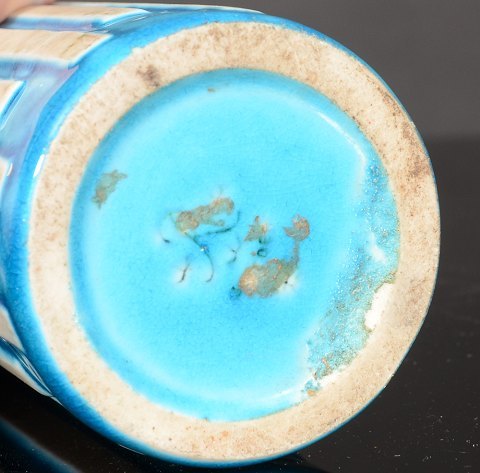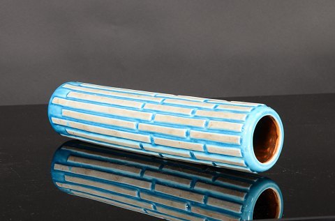 Rörstrand stoneware vase with relief pattern. Turquoise and sandstone glaze. In perfect condition. Height: 24.5 cm.