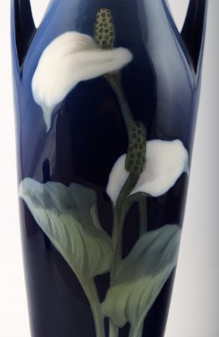 Royal Copenhagen Art Nouveau vase, decorated with flowers. Measures 32 cm. Factory second quality, in perfect condition.