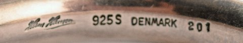 Hans Hansen sterling silver bracelet in modern danish design, number 201. 6.5 cm. in diameter. In perfect condition.