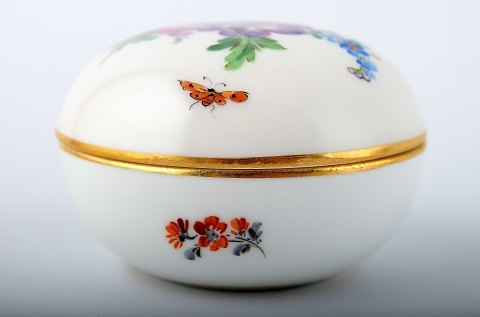 Meissen lågæske dekoreret med blomster. I perfekt stand, 1. sortering. Måler 6.5 x 5.5 cm.