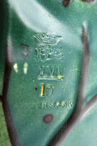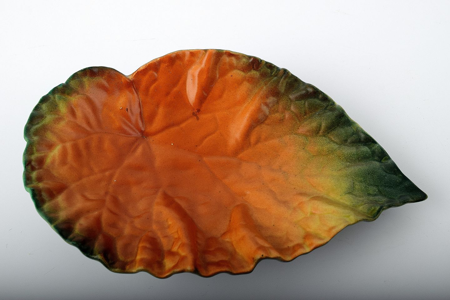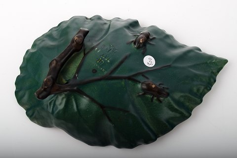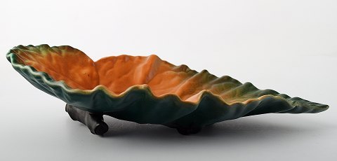 Ipsens enke nummer 19, keramikfad i form af blad. 22.5 cm. langt. I perfekt stand. Stemplet.