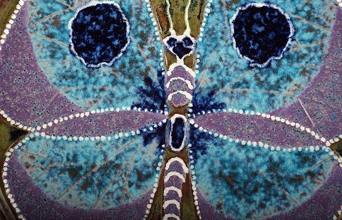 Nittsjö, Sweden, large ceramic dish decorated with a butterfly. Measures 36 cm. in diameter. Stamped. In perfect condition.