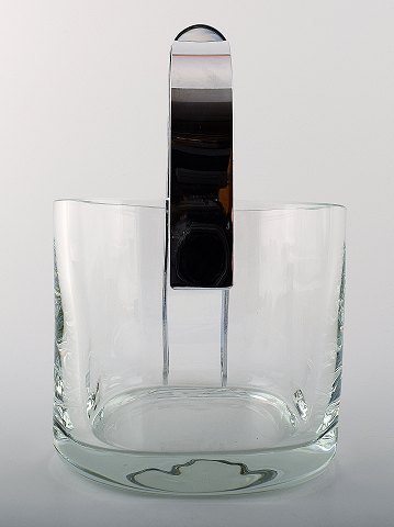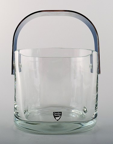 Orrefors kunstglas isspand med tang i rustfrit stål. Enkelt design og høj kvalitet. I perfekt stand. Måler 14 x 22 cm.