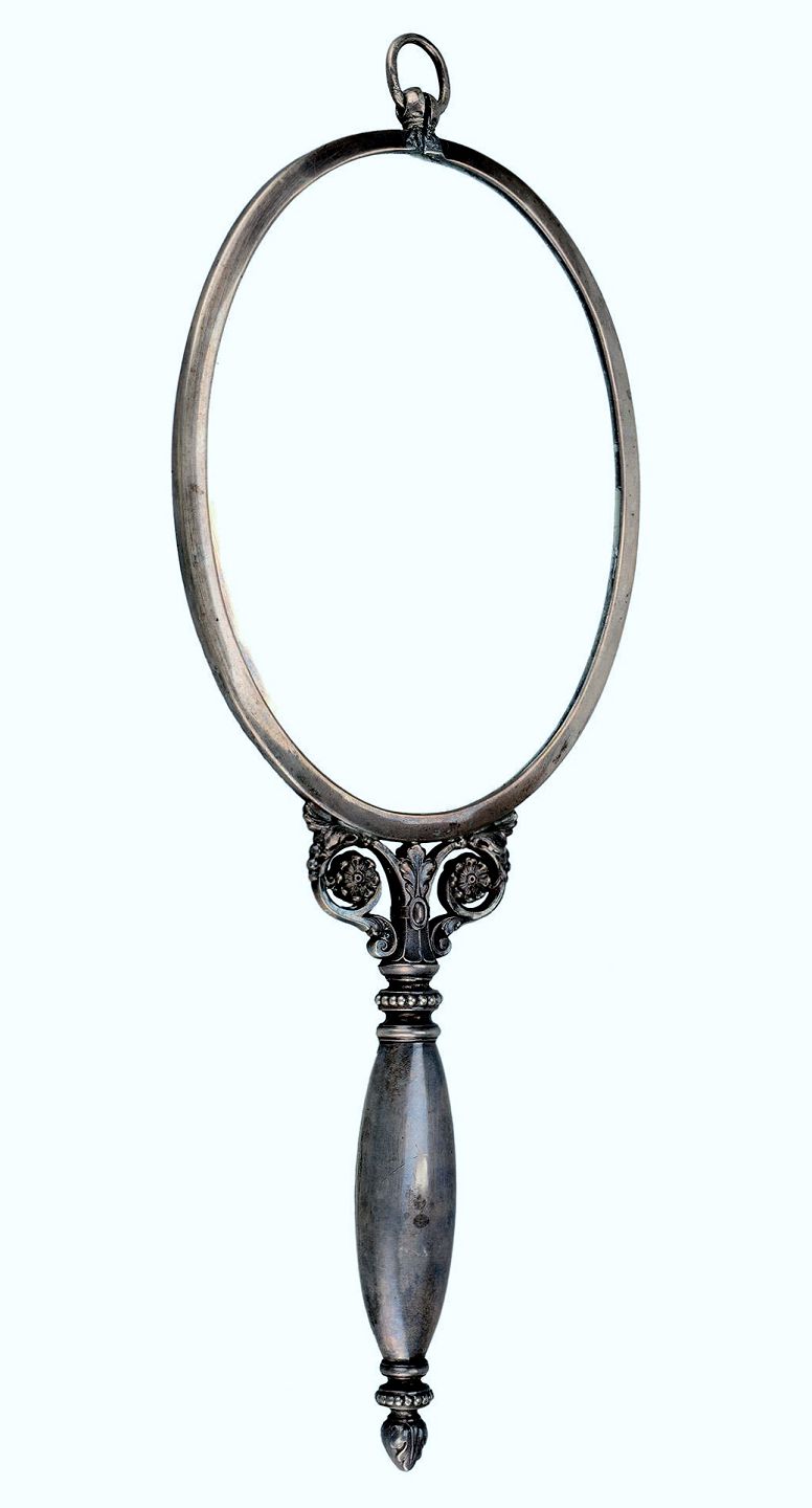 Hand Mirror, silver, dated 1900, GAB, Sweden. Stamped "GAB" hallmark "X6" (= 1900). Height 32 cm. In good condition.