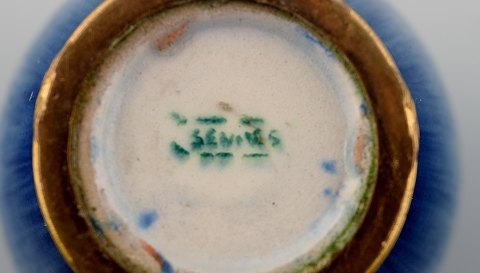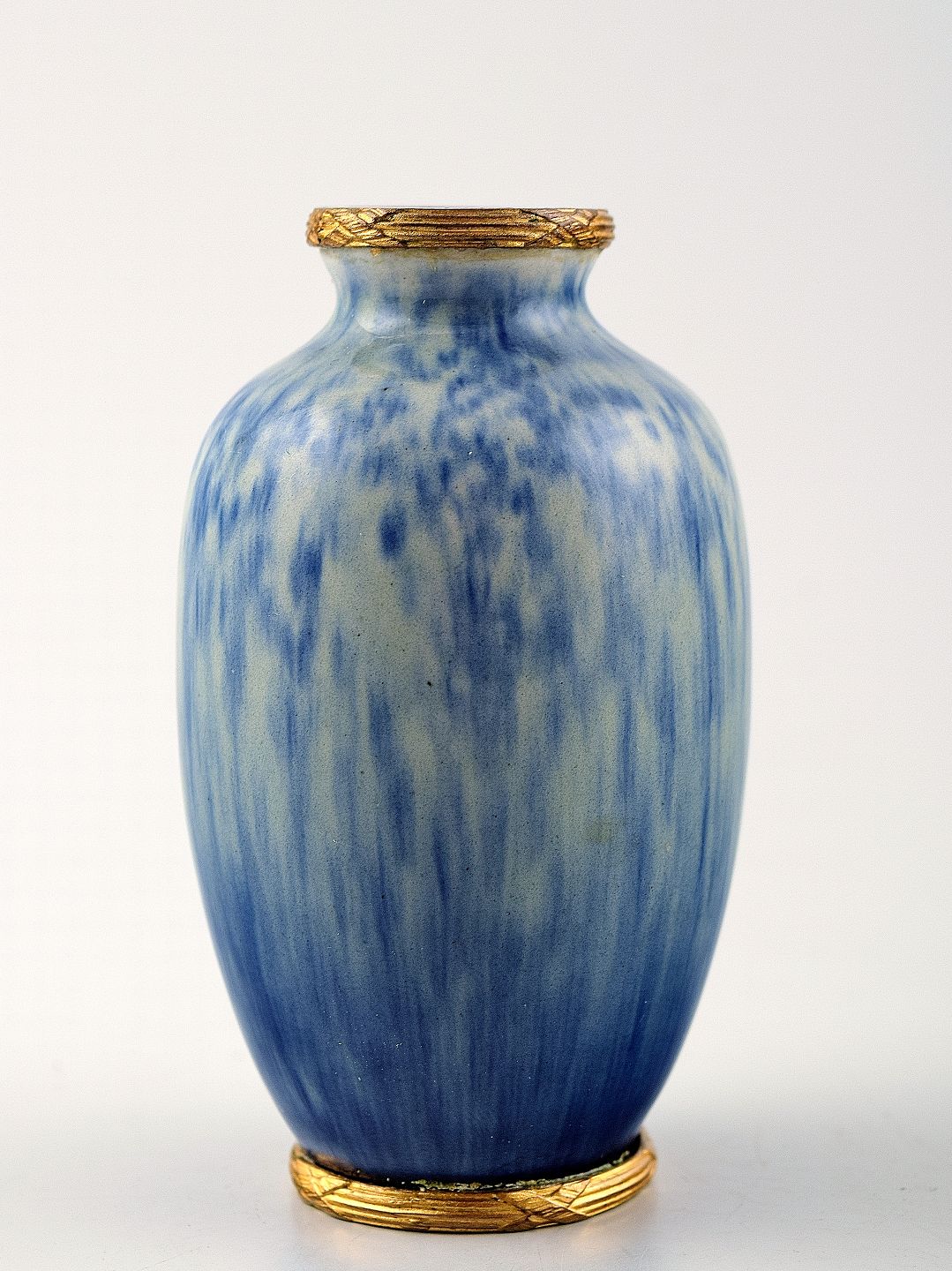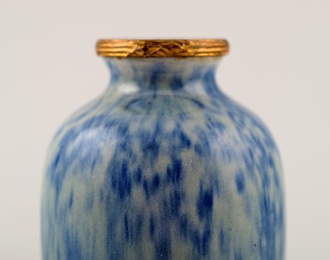 Sèvres Art nouveau ceramic vase by Paul Jean Milet (1870-1950) early 1900s. Beautiful crystal glaze of blue and gray shades. Mountings in brass. In good condition. Marked. 8 cm. high.