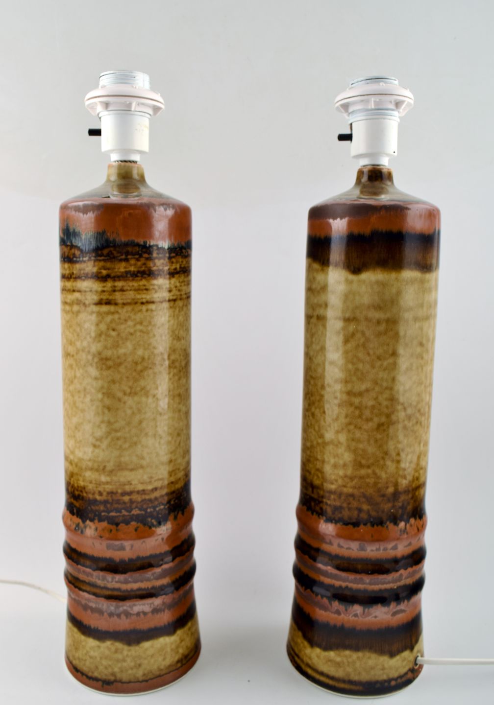 Et par retro Rörstrand stentøjslamper. Glasur i brune nuancer. I perfekt stand, 1. sortering. 49.5 cm. høje.