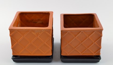 Gustavsberg, Wilhelm Kage, a pair of plant pots in red earthenware.