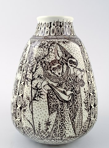 Bjørn Wiinblad, vase, forskellige motiver, fajance. Producent: Nymølle Design: Bjørn Wiinblad Højde : 17 cm. Perfekt stand.