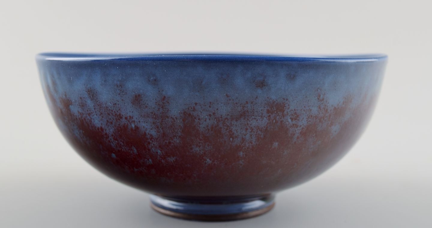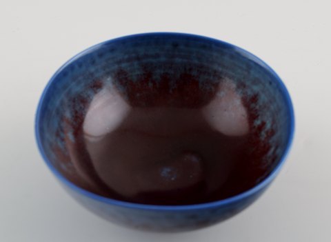 Berndt Friberg (1899-1981), Gustavsberg Studio. Skål, glasur i blåviolette nuancer. Måler: 12.5 x 6.2 cm. I perfekt stand.
