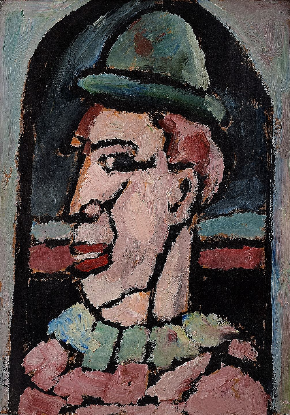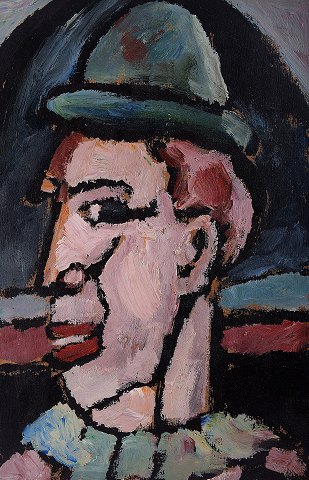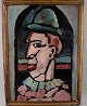 Ubekendt kunstner, ca. 1920. Klovneportræt Usigneret. Olie på plade. 46.5 x 33.5 cm. Rammen er 2 cm. bred. I god stand.