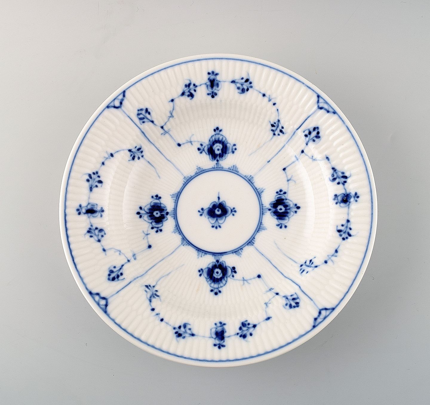 8 sjældne B&G, Bing & Grøndahl Danish China works suppetallerkener. Måler 24 cm. x 6.5 cm. Sent 1800 tallet. Perfekt stand.