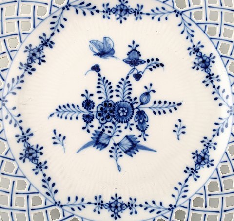11 antikke KPM, berlin gennembrudte flade tallerkener, blå dekoration med blomster og sommerfugl. Måler 22 cm. I flot stand.