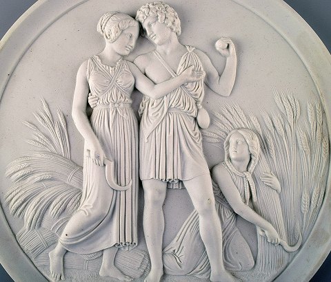 Sjælden B&G (Bing & Grøndahl) stor biscuit platte efter Thorvaldsen, ca. 1880´erne. I perfekt stand, 1. sortering. Måler 29 cm.