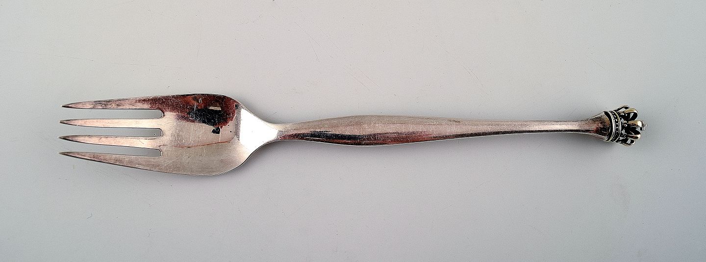 Fork with royal crown, sterling silver. Danish. Marked. Measures 19.5 cm.