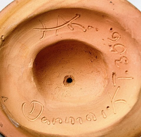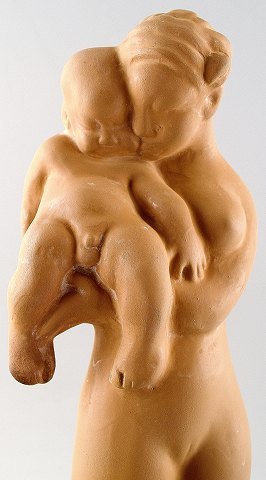 Figur af lertøj. Signeret HAK Danmark. Udført hos Kähler. Kvinde med barn. Modelnummer 356. Højde 31 cm. Kai Nielsen, f. Svendborg 1882, d. Frederiksberg 1924. I flot stand.