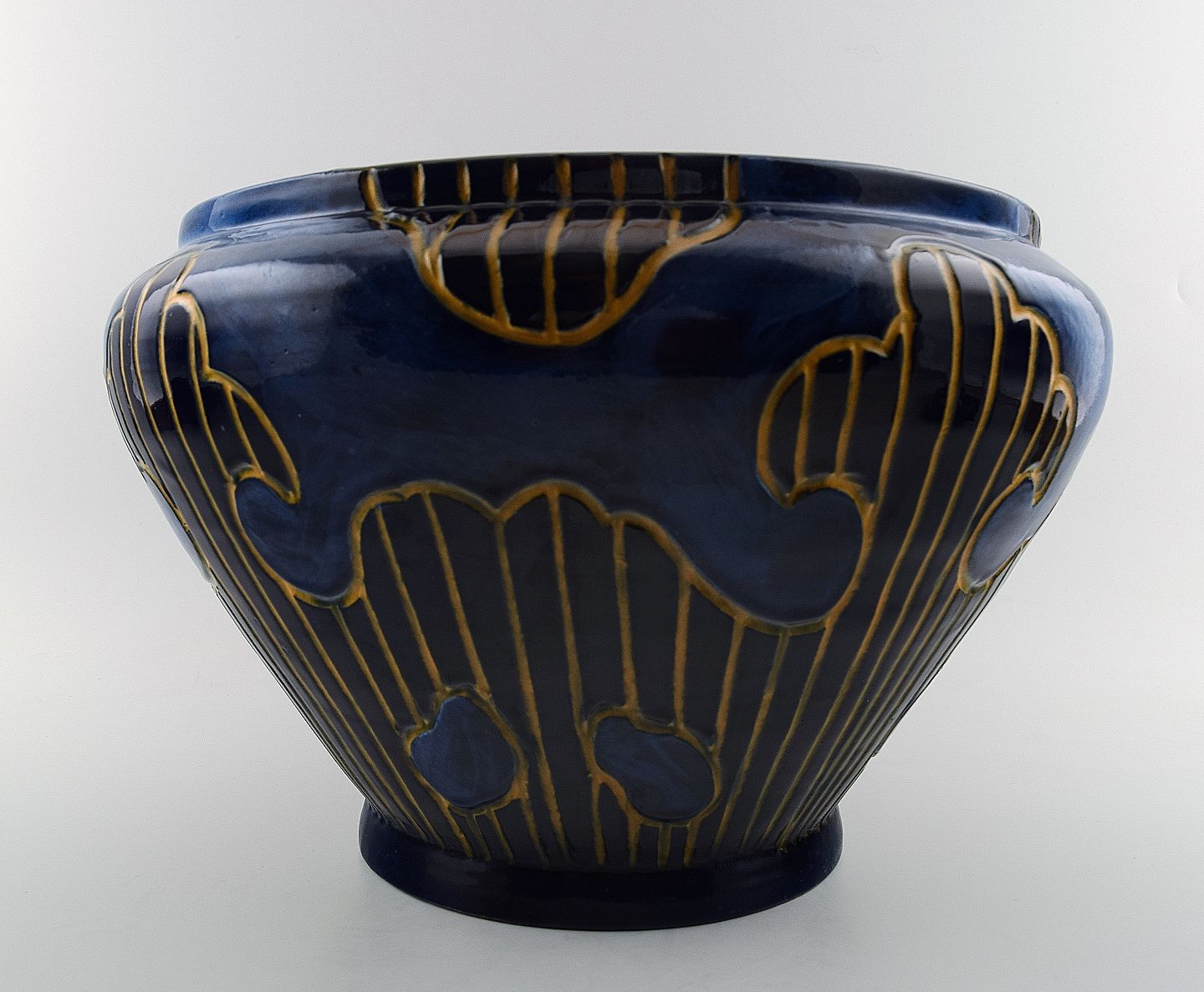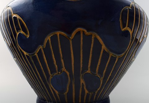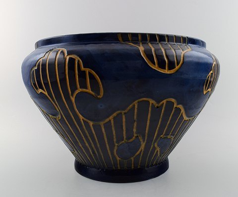 Stor dansk keramik krukke, antageligt Kingo. Smuk dybblå glasur. Stemplet KK. Måler 33 x 23 cm. I perfekt stand.